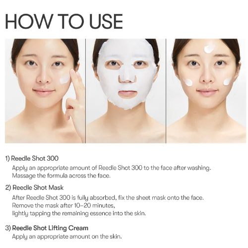 1. Aplica una cantidad adecuada de Reedle Shot 300 sobre el rostro después de la limpieza. Masajea la fórmula por todo el rostro.