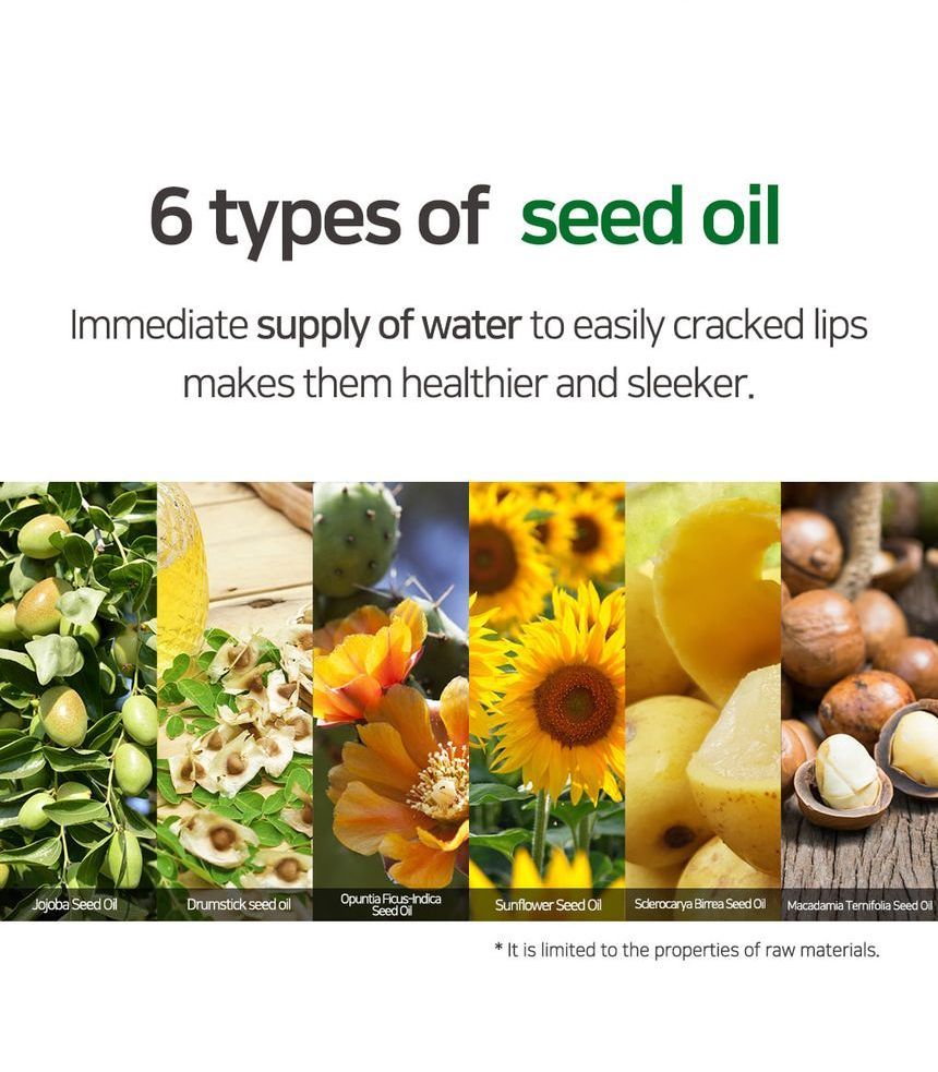 Enriquecido con distintos aceites de semillas ricos en nutrientes, extraídos de jojoba, almendra, girasol y nuez de macadamia, para nutrir, suavizar y realzar los labios.