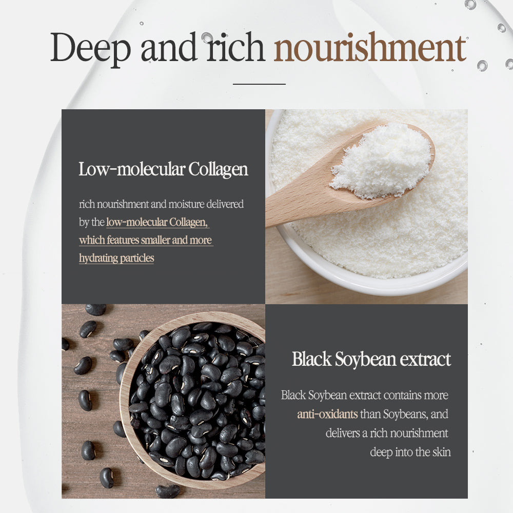 Rica en extracto de soja negra (que contiene vitamina E y antioxidantes) para brindar una nutrición intensa y lograr una piel luminosa y de aspecto saludable.
