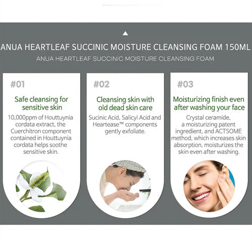 [Limpiador facial] Anua *renewal* Heartleaf Succinic Moisture Cleansing Foam 150ml