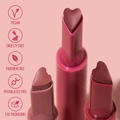 Un labial en forma de corazón que combina aceites nutritivos para una fórmula rica y fundente que ofrece color acondicionador y de alto brillo.
