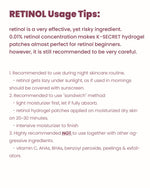 ❤️ RETINOL (0,01%) Parches hidrogel reafirmantes enriquecidos con retinol, con propiedades antiarrugas, hidratantes profundas y nutritivas. ✅ RETINOL = Vitamina A pura que estimula el metabolismo cutáneo, ayudando a mejorar la estructura y elasticidad de la piel, reduciendo visiblemente la apariencia de arrugas finas. ✅ NIACINAMIDA = forma de Vitamina B3 que ayuda a la piel a generar una barrera lipídica (ceramidas) para una hidratación duradera. Sus potentes propiedades antiinflamatorias y antioxidantes contribuyen a calmar la piel y favorecer la reparación celular. ✅ SODIO HIALURONATO = derivado molecular del ácido hialurónico que penetra fácilmente en profundidad, proporcionando hidratación fundamental. ❗️ Forma única – Úsalos donde lo necesites: área de ojeras, frente, pliegues nasolabiales, cuello y más. 🌙 Parches grandes (luna) para el área debajo de los ojos.