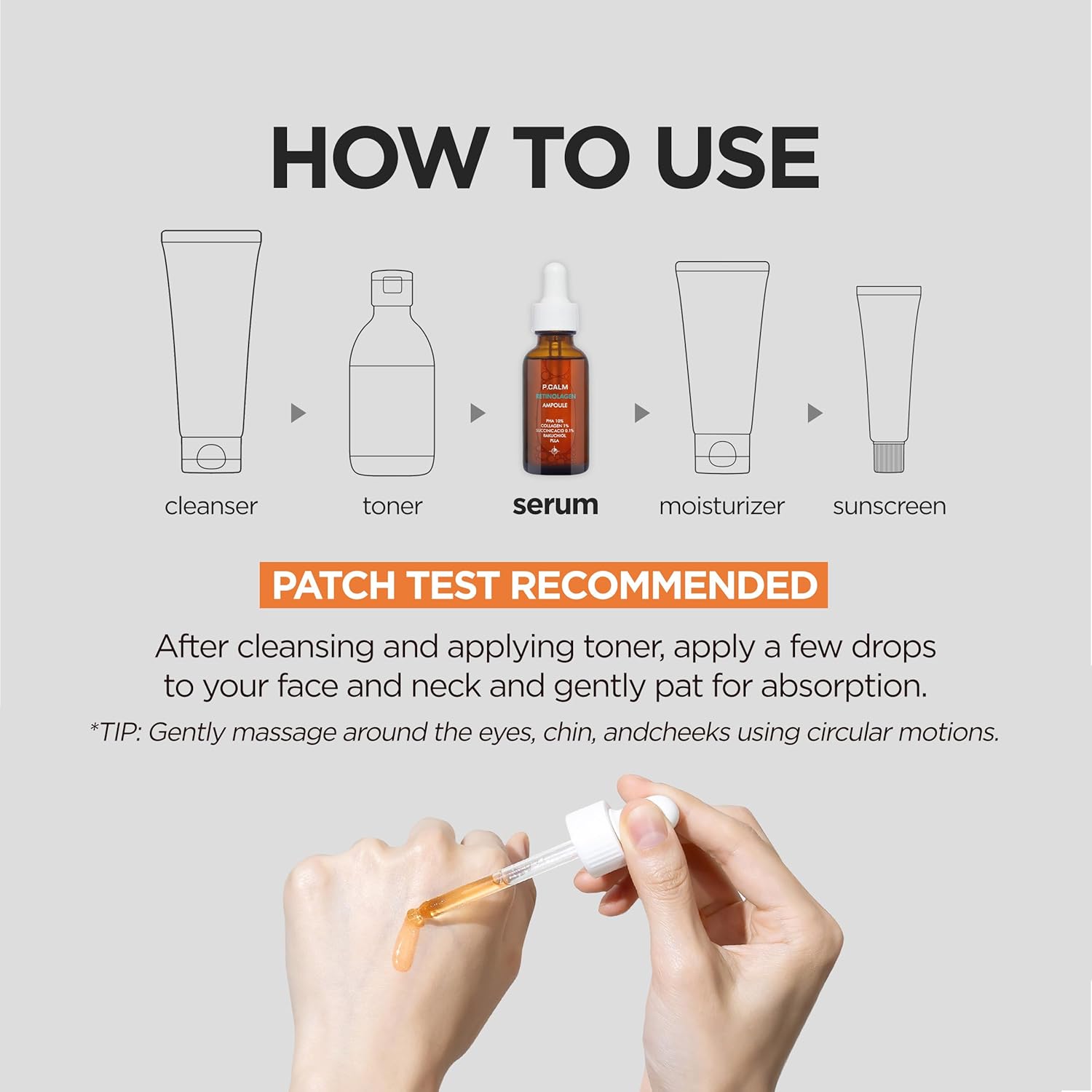 • P.CALM Retinolagen Ampoulr for nourishing, smoothing and radiating.Clinical Test - Pores Reduced by 42%Visible improvementsClinically tested for low irritationRetinolagen ComplexSupporting IngredientsHow to Use