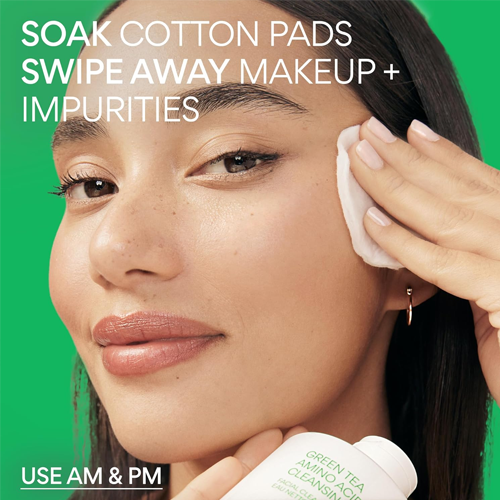 • Un agua micelar suave con té verde y un complejo de aminoácidos hidratantes que elimina el maquillaje ligero y las impurezas mientras refresca la piel.