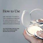 Un cushion solar vegano e hidratante de uso diario con SPF50+ PA++++, que ayuda a proteger la piel de la radiación UV.